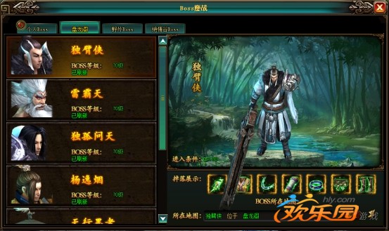 个人BOSS每天每个BOSS可以挑战一次,每个BOSS掉落的装备等级也是不同的的。