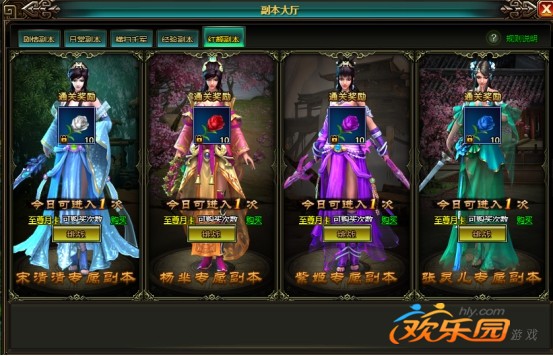 红颜副本主要产出红颜知己的培养道具,每天一次,不要错过。
