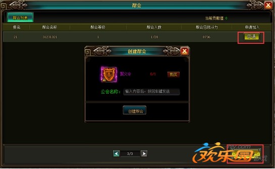 在帮会界面里可以看到其他玩家创建好的帮会可以点击帮会后面的“申请”,申请加入其他玩家的帮会,也可以点击“创建帮会”来创建一个自己的帮会,购买帮会创建所需的道具,输入帮会的名称后,自己的帮会就创建好了。