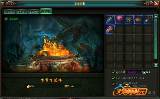 在高等级的情况下平常打怪升级中获得经验升级的效率会非常的低,打BOSS获得的的不需要的装备一定不要丢弃,在装备回收中转化为经验和金钱,又能升级又有钱赚,何乐而不为呢。
